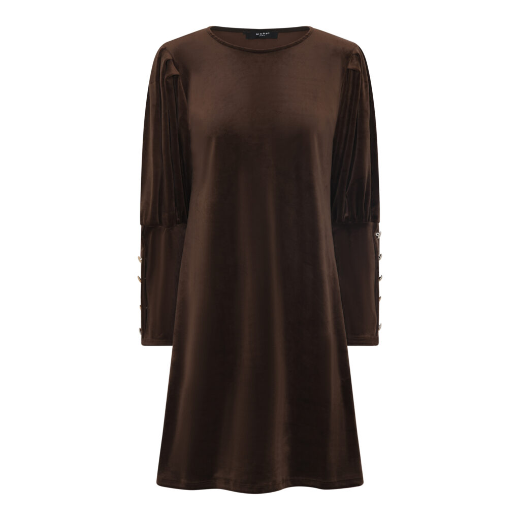Velourkjole med gullknapper.